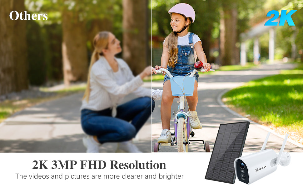 2K and 3MP FHD- This camera security solar presents clearer and pictures and videos